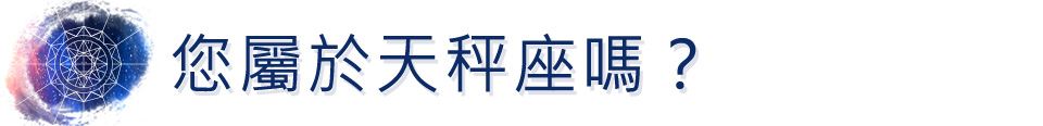只要您是在西曆的9月24日~10月23日間出生的朋友,您就是屬於天秤座。 這種方式就是所謂的「太陽星座」判斷法,是以太陽在各星座的時間來定判斷。 不過太陽是否實際在宮,仍必須看星圖判斷比較確實,只用生日判斷是可能有誤差的。 還有一種情形是明明已經離開前星座,但性格仍然比較像前星座;或太陽已接近但尚未進入下一星座,但性格卻卻像下一星座的情形,此時仍須視具體情形來進行調盤。(通常來說,在接近或離開某宮位的5度範圍內,這種可能性最高) 以上是用「太陽星座」來判斷的方式,但對您有真正影響的,還是用「命宮星座」來判斷更為深入。 「太陽星座」,是您自我認定與外顯出來的星座特質。而「命宮星座」則是一個人的命運定位的中心點。只有找出命宮星座,才能定位出其他兄弟、夫妻、子女、財帛、官祿等宮位關係。也才能掌握一個人本命與行運的軌跡。 「太陽星座」就像您外在的服裝與打扮,是不證自明的。 而「命宮星座」則像您內在的條件,如性情、習慣、資產、出身、社會地位等等,是必須接近才能得知的。 *您要知道您真正的「太陽星座」與「命宮星座」,請按此 只要您的「太陽星座」或「命宮星座」是天秤座座,您就可參考以下天秤座十二宮位的敘述。 「太陽星座」表現的是外在、形態上的樣子;「命宮星座」則是內在,實質的特質。判斷上是以命宮星座為主,而太陽星座為輔。 *如您要更進一步知道您十二宮位「太陽星座」與「命宮星座」搭配的情形,請按此 《進階閱讀》如何判斷您屬於哪一個星座 《進階閱讀》中西占星定命宮法的異同比較